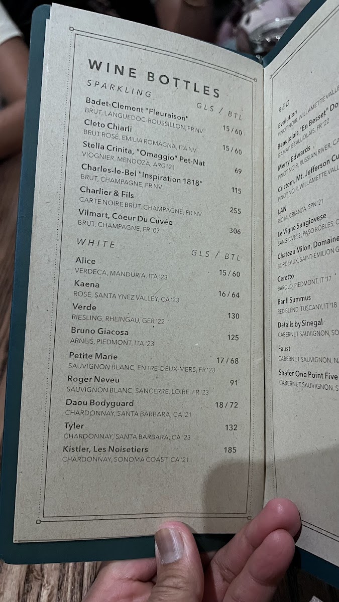 La Madrina Pisco, Botanist Gin, Lustau Fino Sherry, Dolin Blanc, celery bitters, local habanero, shiitake, mirin, rice wine vinegar, thyme