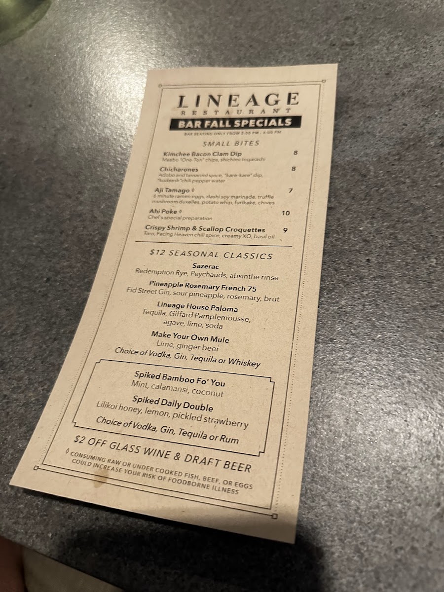 At Lineage Menu, located in the heart of Wailea, Hawaii, you’re in for a truly special dining experience. This thoughtfully curated menu blends local flavors with modern techniques, offering a rich variety of dishes that cater to every palate. From fresh seafood sourced directly from the Pacific to mouthwatering meats, there’s something to excite every guest. Whether you’re indulging in a delicate appetizer or a satisfying entrée, each dish is crafted with the finest ingredients to ensure both quality and flavor. The menu at Lineage highlights not only the best of what Hawaii has to offer but also incorporates global influences, creating a fusion that’s both comforting and innovative. With a welcoming atmosphere and a diverse range of options, this is the perfect spot for a meal to remember.